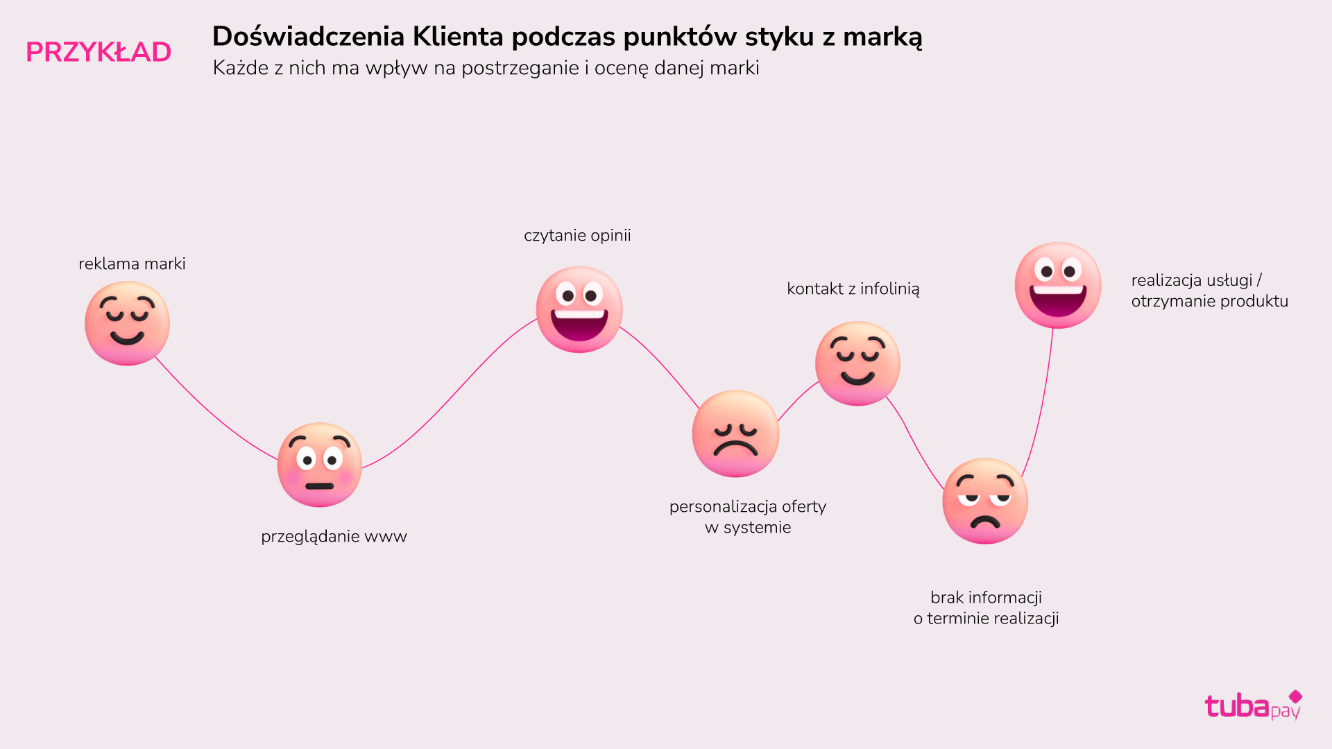 W dużej mierze przyczyniają się do niej doświadczenia, które towarzyszą Klientowi na każdym etapie kontaktu z marką. Można zaryzykować tezę, że w świadomości nabywcy przyznawane są pozytywne lub negatywne punkty dla marki podczas każdej styczności z daną firmą. Punkty te definiują czy lojalizacja Klienta się powiedzie, czy też nie. Wbrew pozorom punkt styku z firmą to nie tylko faktyczny kontakt mailowy, czy telefoniczny z Klientem. To każda forma styczności z daną marką - od reklamy, przez użytkowanie strony, czytanie opinii, aż po rozpakowywanie paczki, realizację usługi czy wszelkie procesy reklamacyjne i działania remarketingowe.